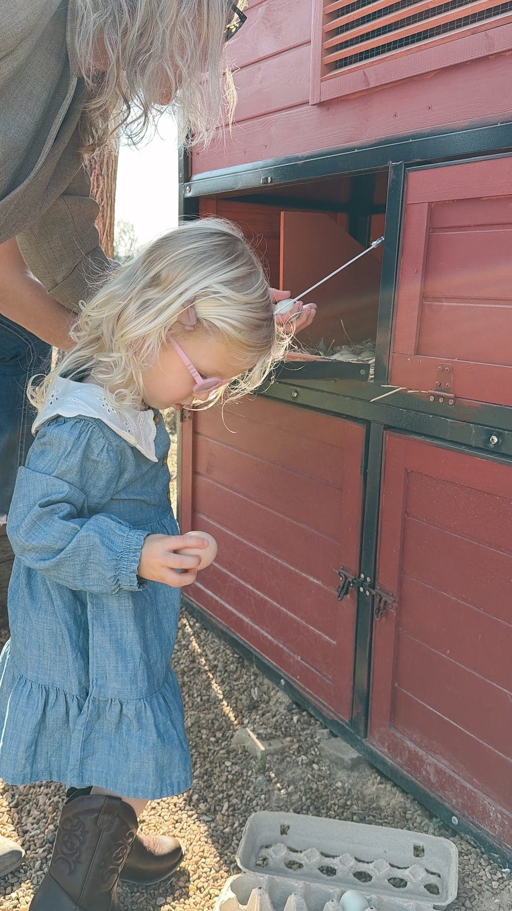 Watching our little ones start to speak their own thoughts in the cutest ways, scootering around the house playing pretend that they’re going to each other’s houses, and seeing Avery pick her very first fresh eggs from a chicken coop!
